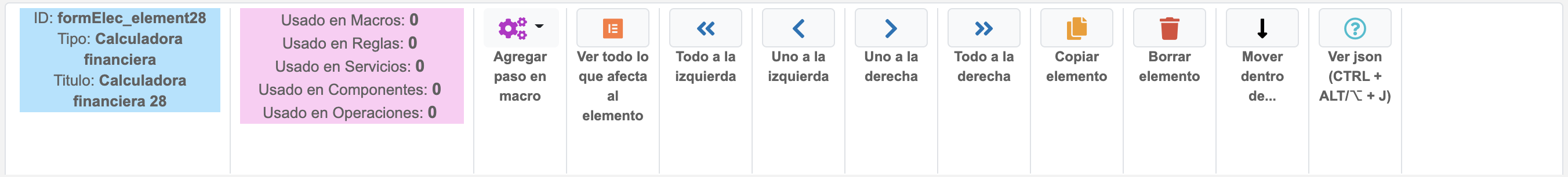 Atributos informativos para indicar la cantidad de macros, reglas, servicios, componentes y operaciones en realción con el elemento, es decir, si alguno de los listados involucra al elemento se sumará en este review informativo.