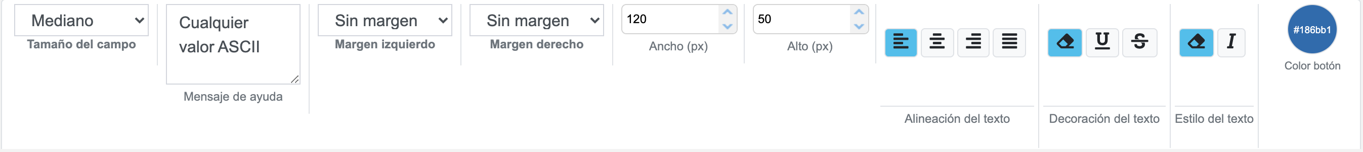 - Tamaño del campo: Atributo habilitado para Web y ajusta el tamaño del elemento para ocupar el espacio que se requiera