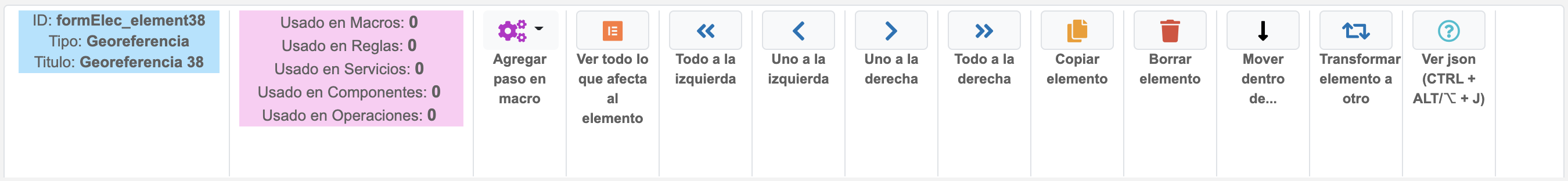 Atributos informativos para indicar la cantidad de macros, reglas, servicios, componentes y operaciones en realción con el elemento, es decir, si alguno de los listados involucra al elemento se sumará en este review informativo.