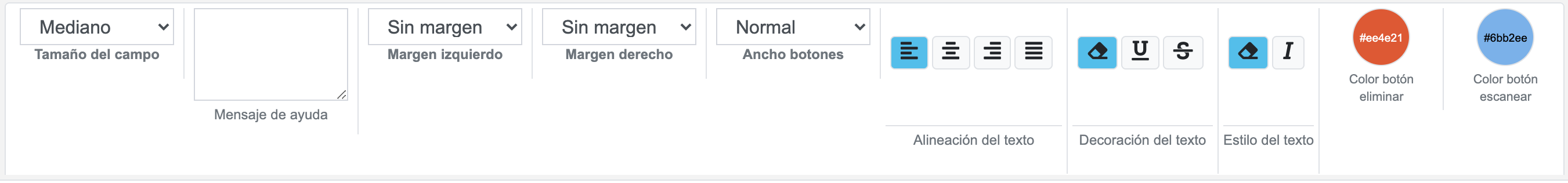 - Color texto botón escanear: Color para el texto del botón