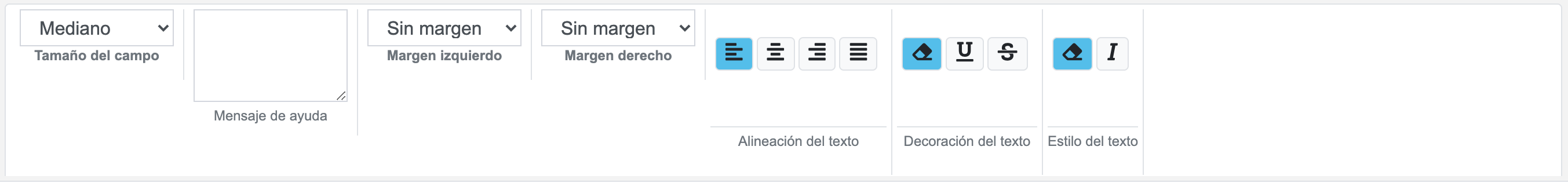 - Todo a la izquierda: Mandar el elemento al principio del formato