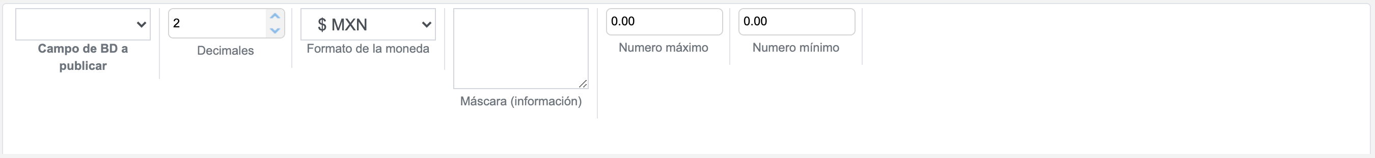 - Decimales: Número de decimales en el formato del número