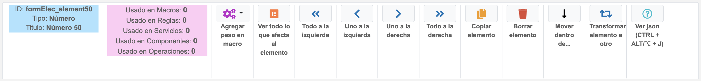 Atributos informativos para indicar la cantidad de macros, reglas, servicios, componentes y operaciones en realción con el elemento, es decir, si alguno de los listados involucra al elemento se sumará en este review informativo.