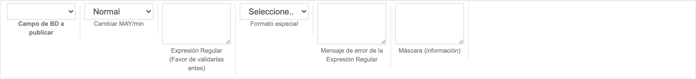 - Expresión regular: Campo para agregar la expresión regular que valida que el campo tenga el formato correcto