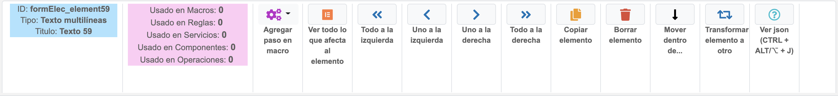 Atributos informativos para indicar la cantidad de macros, reglas, servicios, componentes y operaciones en realción con el elemento, es decir, si alguno de los listados involucra al elemento se sumará en este review informativo.