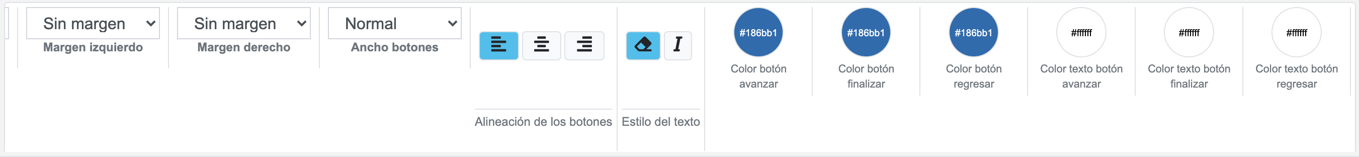 - Ancho botones: Tamaño proporcional de todos los botones del elemento
