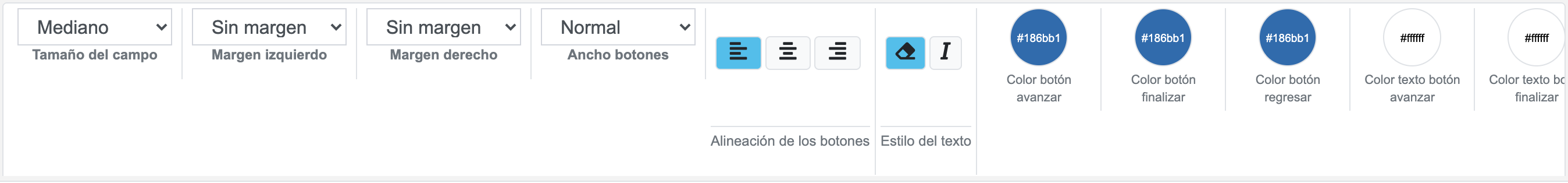 - Ancho botones: Tamaño proporcional de todos los botones del elemento